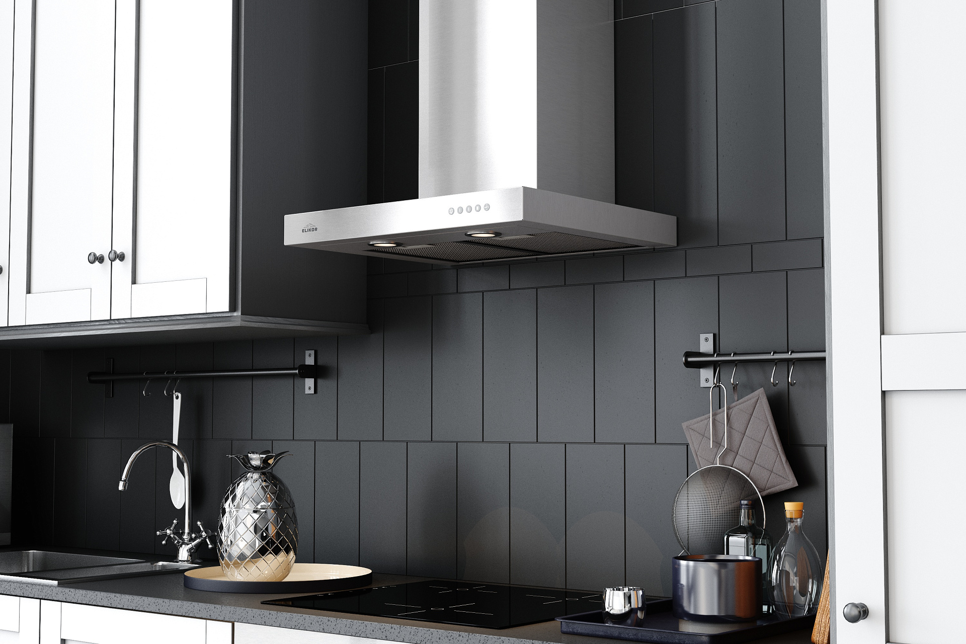 Особое покрытие поверхности вытяжек из нержавеющей стали, которое защищает от образования нежелательных следов и отпечатков пальцев.